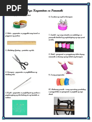 Save Save ARALIN 5 MGA KAGAMITAN SA PANANAHI SA KAMAYpptx For Later. Itabi ang isang piraso ng tela sa tuktok ng isa pa at tumahi sa paligid ng perimeter gamit ang isang makina ng pananahi. Translate uri ng kagamitan sa pagtatahi at gamit nito.