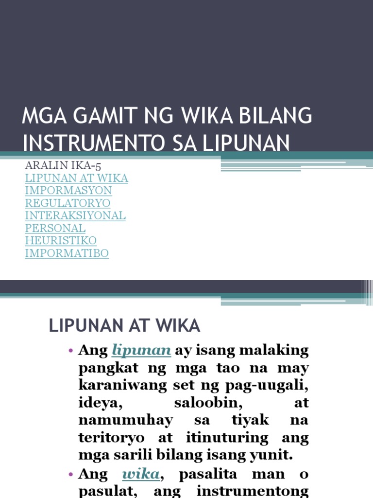 Mga Gamit Ng Wika Bilang Instrumento Sa Lipunan Pdf